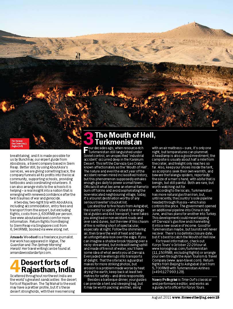 Time Out - Bejing: The Seven Wonders of Asia - "Knowing how to avoid crowds at Angkor's temples turns what could be a bewildering experience into one that's breathtaking, and it is made possible by Bunchhay, our expert guide from ABOUTAsia....", August 2011